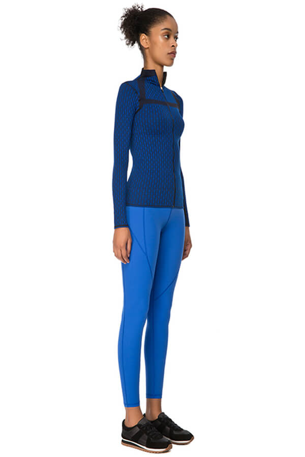*Önden fermuarlı, balıkçı yaka, geometrik desenli active ceket.