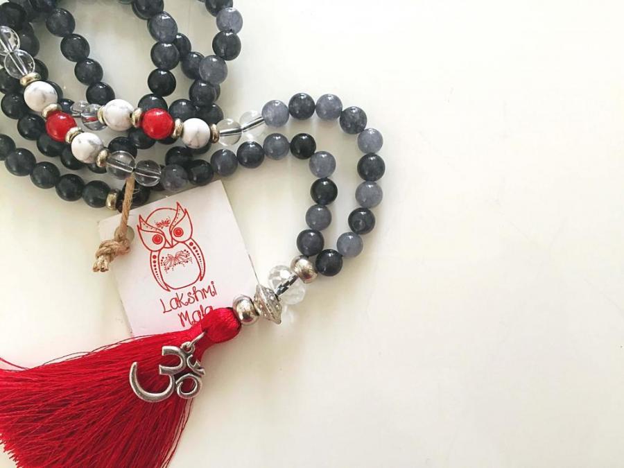 Gri Jade& Havlit Taşı & Om Detaylı 108'lik Mala